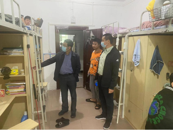 2022年9月25日中午1点,在贺院长的带领下,保卫处、后勤处及物业保安人员对观山湖校区生活区4号、5号学生宿舍楼进行安全大排查。