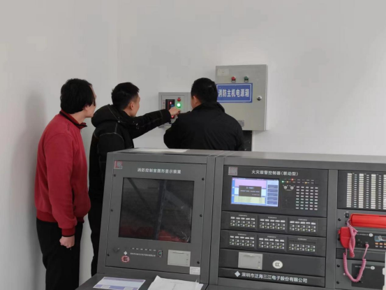 保卫处田茂晶、曹艺军老师检查校园消防控制室