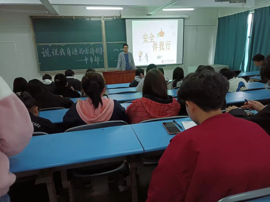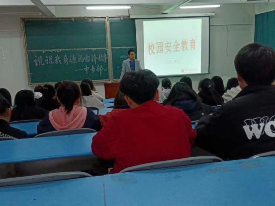 为提升我校中职学生的安全防范意识,维护校园安全稳定,3月28日中午,保卫处在观山湖校区3教330阶梯教室为中职学生开展校园安全教育讲座。本次讲座由保卫处副处长黄宗正主讲,100余名学生代表参加讲座。
