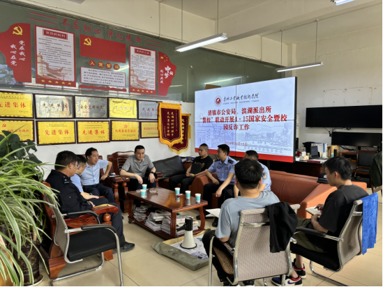 清镇市公安局反诈专班民警及滨湖派出所赵蓬副所长到校指导工作,学院党委委员、副院长梅松对学院开展全民国家安全教育日及校园反诈提出相关工作要求,对全校师生开展一对一的国家安全法治宣传,进一步增强师生国家安全防范意识,筑牢平安和谐的校园环境,确保校园的安全稳定。