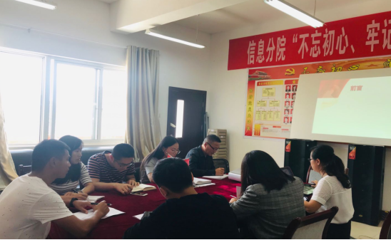 根据信息分院党总支“不忘初心 牢记使命”主题教育的工作安排和要求,信息分院学生党支部认真组织全体党员同志学习《习近平关于“不忘初心、牢记使命”论述摘编》,会议由学生党支部书记杨子爱同志主持,学生支部联系人李俊同志与全体党员参加。