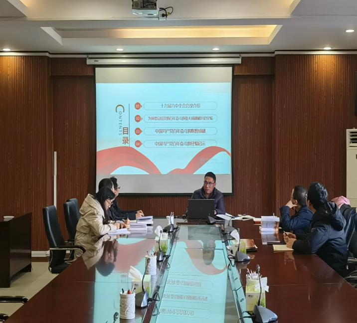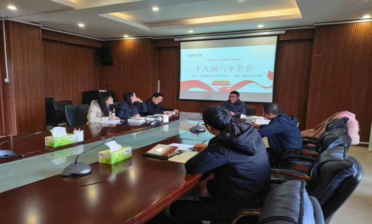 2021年11月23日,机关党总支在悦知楼三楼会议室开展“学习贯彻党的十九届六中全会精神”专题党课。党课由机关党总支书记罗芝华同志讲授,机关党总支支委成员、各支部书记参加了学习。