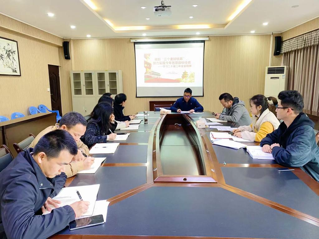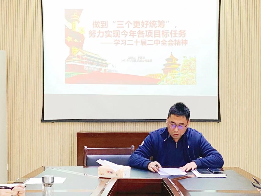 为做到“三个更好统筹”,努力实现今年各项目标任务,3月2日,党政办公室支部在时光校区悦知楼三楼小会议室开展了党课学习活动。党政办公室支部书记罗芝华领学了中国共产党第二十届中央委员会第二次全体会议精神,支部全体党员同志参加学习。