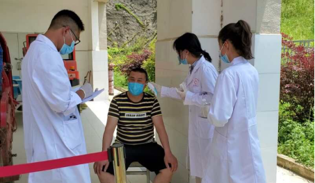 四、演练过程:1、每个进入学生公寓的学生必须经过自动测温仪检测体温。2、当发现体温大于37.3度的发热病人,宿管人员立即联系医务室,同时安排该患者到临时观察室等待医生。3、医务室立即安排医生到现场初诊,同时通知后勤处段娟娟老师。4、段娟娟老师向田昌进处长汇报,同时在后勤处微信群发布消息,通知疫情防控小组人员到位,(后勤处负责消杀以及与患者同室的同学的隔离观察工作,学生处负责排查学生情况,通知学生家长以及隔离观察同学的心理疏通教育工作;保卫处负责秩序维护),以及通知防疫专车驾驶员就位。5、田昌进处长通知学生处处长龙明堂和学院领导。6、医生通知相应医院接诊(清镇市第一人民医院),并随防疫专车护送患者到指定医院就诊,得到指定医院处理结果后,医生将结果报送学院后勤处。