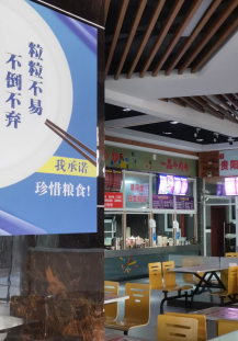 “不倒不弃 粒粒不易”、“光盘行动 拒绝浪费”、“一粥一饭,当思来之不易;半丝半缕,恒念物力维艰”……在学院食堂,在就餐区、墙壁上,张贴的宣传画十分醒目,在用餐高峰期,学生志愿者举牌流动宣传,一切都旨在提倡厉行节约、爱惜粮食、杜绝浪费。