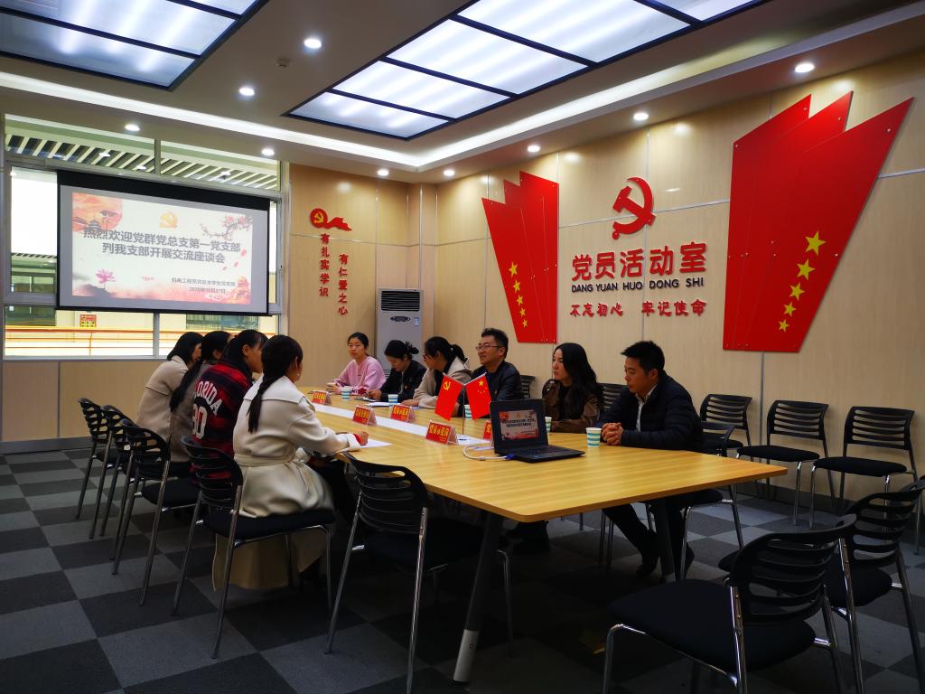 党群党总支第一党支部的党员同志们先对党员活动室进行了参观,了解了机电学生党支部标准化建设的情况。后在交流会上,双方就本支部概况、党建及“职教二十条”等进行了交流探讨,分享了基层党建工作的先进经验做法。第一党支部书记吴伟说到,支部交流活动有利于提升基层党组织的凝聚力和战斗力,有利于形成优势互补、共同发展的党建工作新格局,我们要建立长效化交流机制,以此活动为契机,积累交流活动经验,形成常态化交流模式,实现双方基层党建工作双融合、双提升。机电学生党支部书记张霞同志说到,在以后的工作中,我们要继续深化交流关系,拓展交流领域,丰富交流内容,增强基层党支部活力,切实提高基层党建工作水平,形成交流促党建,党建促发展的良好局面。