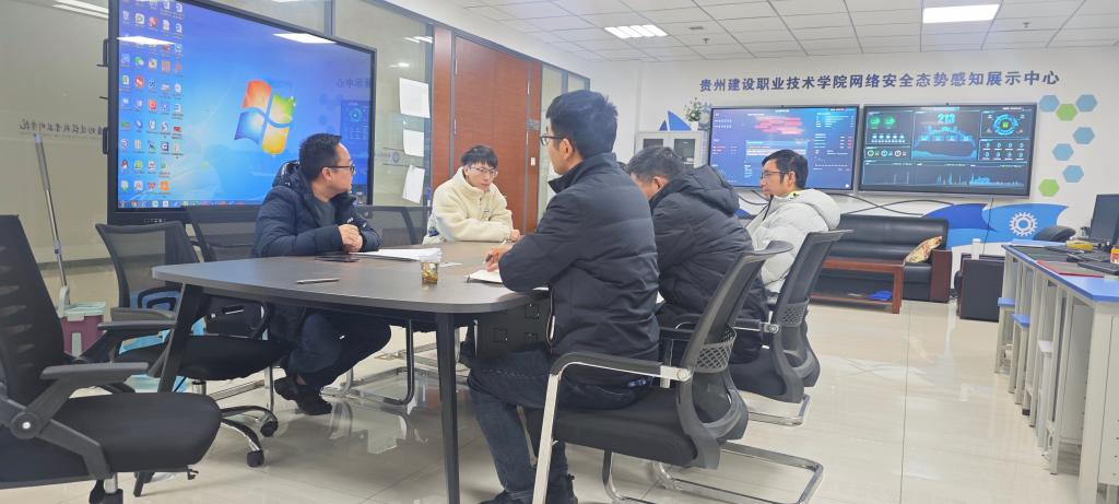 抵达后,双方随即召开座谈会。贵州建设职业技术学院现代教育中心主任王伦详细介绍了该中心组织架构、人员配置与信息化建设成果。随后,双方围绕校园网络安全、师生信息服务优化、多部门数据协同、AIGC 等热点难点深入研讨,分享诸多实战案例,并肩共寻问题的最优解与落地的可行路径,为后续工作的突破点亮了一盏明灯,拓宽了前行视野。