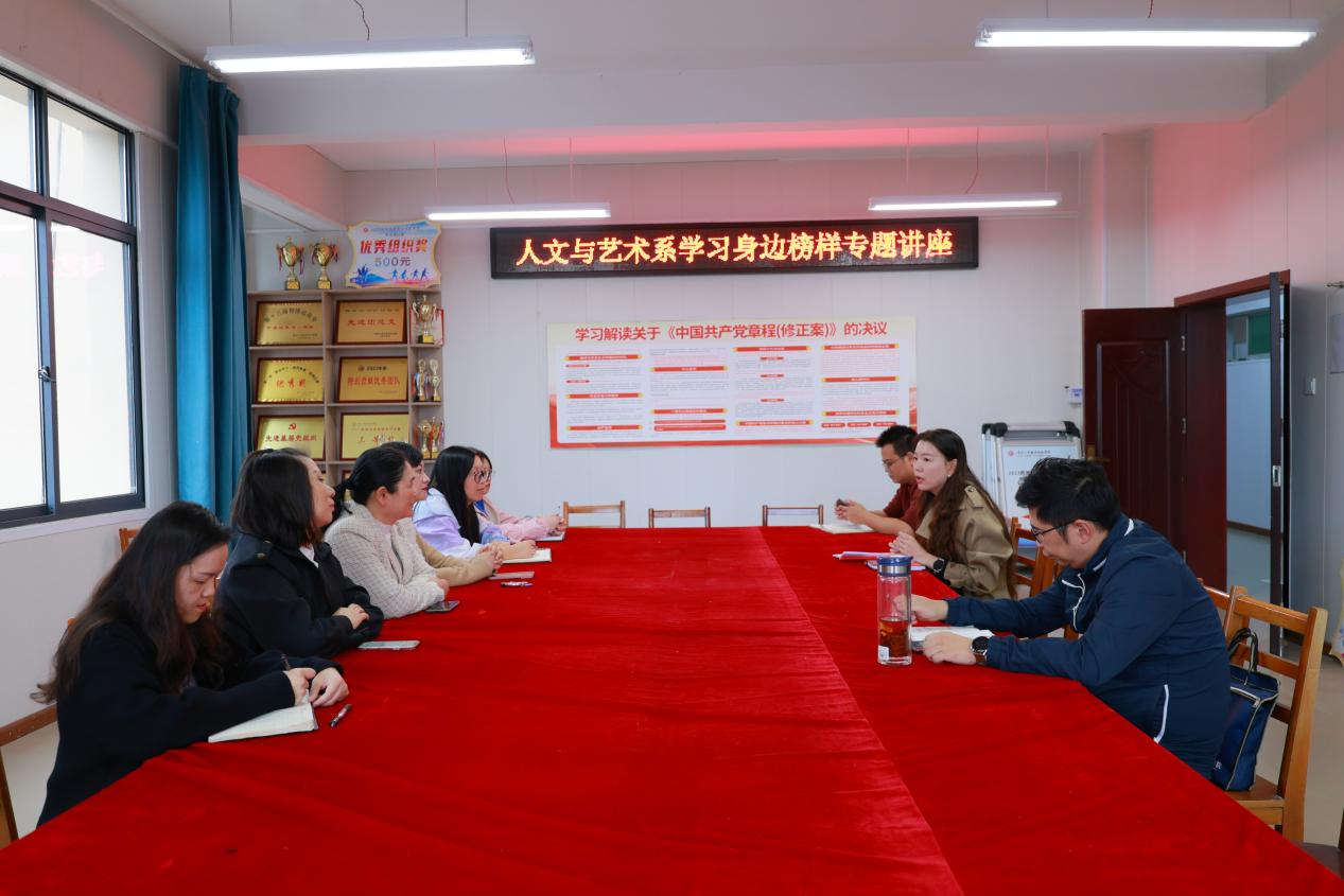 2023年11月7日下午14:00,人文与艺术系“学习身边榜样”专题座谈会在观山湖校区系部办公室举行,由宣传统战部副部长王媛主持,系部专兼职老师参加。