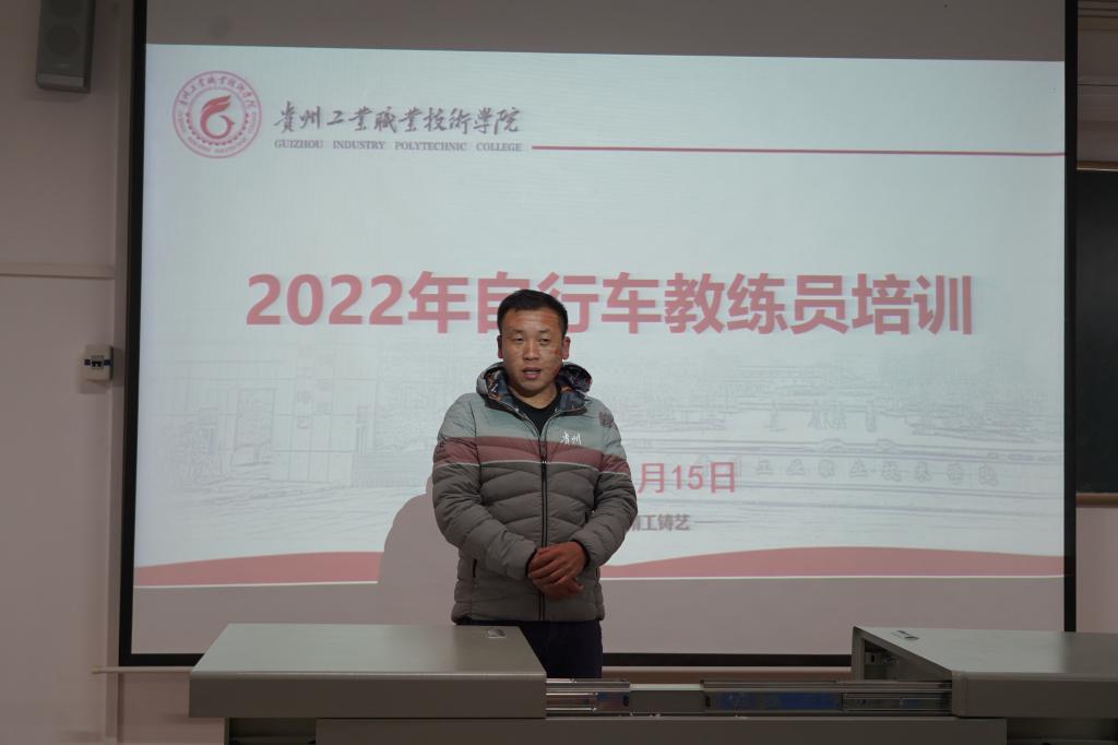 为培养全院师生的体育技能,促进我院自行车运动健康发展。体育教学部于11月15日晚19:00在我院清镇校区悦知楼L006教室特邀贵州省山地自行车队总教练陆正虎、体能教练王安冉为我院17名教师进行自行车教练员培训。