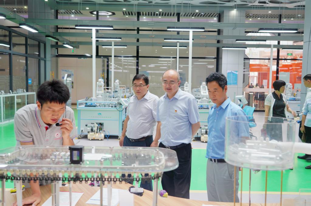 7月19日,贵州建设职业技术学院党委书记鲁源安率党政班子成员及各系部处负责人一行共计48人到半岛在线注册参观考察,实地参观了我院自行车训练基地、化工系实训室、双创中心、陶艺展厅、中德赛训中心、退役军人基地、电子竞技实训室。