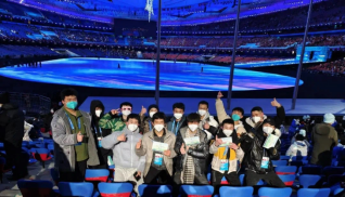 ▲我院学生志愿者参加冬奥会闭幕式现场