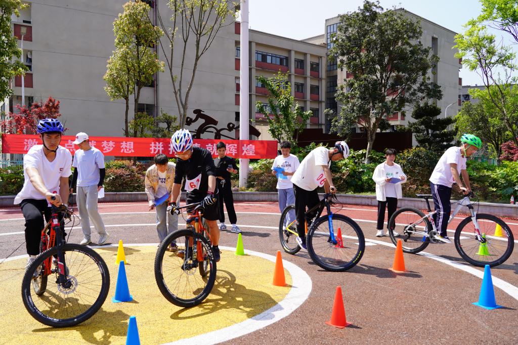 2023年半岛在线注册校园体育文化艺术节自行车趣味赛于4月16日在自行车文化主题公园圆满完赛。此次比赛共有来自学院各系部的近100余名学生分别参加个人绕桩、个人慢骑、个人泵道、绕桩接力4个赛项。
