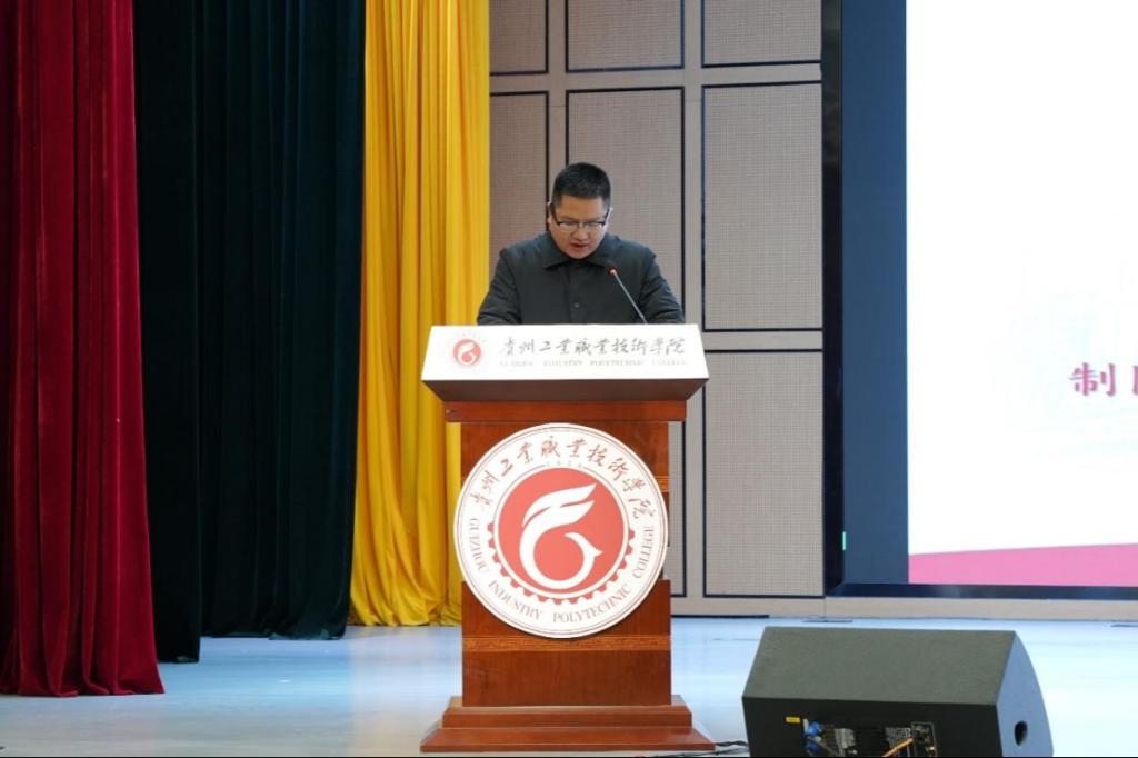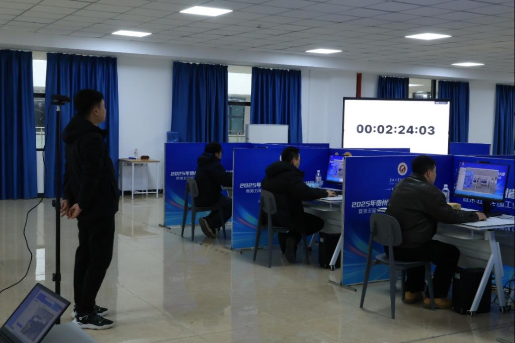 随后,贵州省职业技能鉴定考评指导中心副主任罗建军讲话,指出赛事是贯彻党的二十大精神人才强国战略的实践,以“技能照亮前程”为主题,坚持“技精立业、职教兴黔”思路。他希望选手沉着应战、展现技艺,师生以赛促教促学,强调以赛事推动产教融合与改革,支撑贵州工业高质量发展,最后宣布大赛正式开赛。