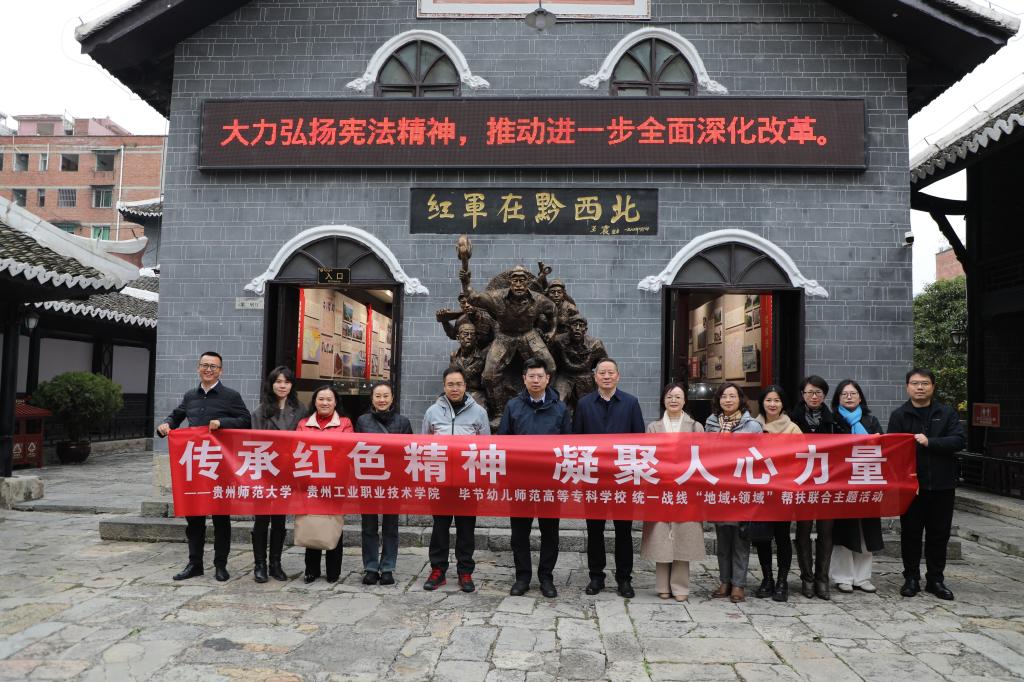 为充分发挥统一战线凝聚人心、汇聚力量的强大法宝作用,按照贵州省委、省政府工作统一部署。12月5日,半岛在线注册、贵州师范大学、毕节幼儿师范高等专科半岛在线注册民主党派赴毕节市开展“地域+领域”帮扶联合主题活动。实地参观了中华苏维埃人民共和国川滇黔省革命委员会旧址、毕节幼专中国传统文化研究基地及汉字文化发展研究中心。参观结束后,围绕“如何更好发挥高校统一战线优势,开展‘地域+领域’组团式帮扶”主题座谈会。